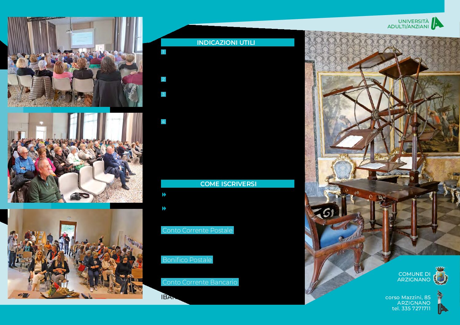 La segreteria è aperta in via Cazzavillan, 20. La quota di iscrizione è annuale e consente la partecipazione ai corsi, mentre eventuali seminari e attività di gruppo complementari potranno essere organizzati durante l’anno su richiesta degli iscritti.