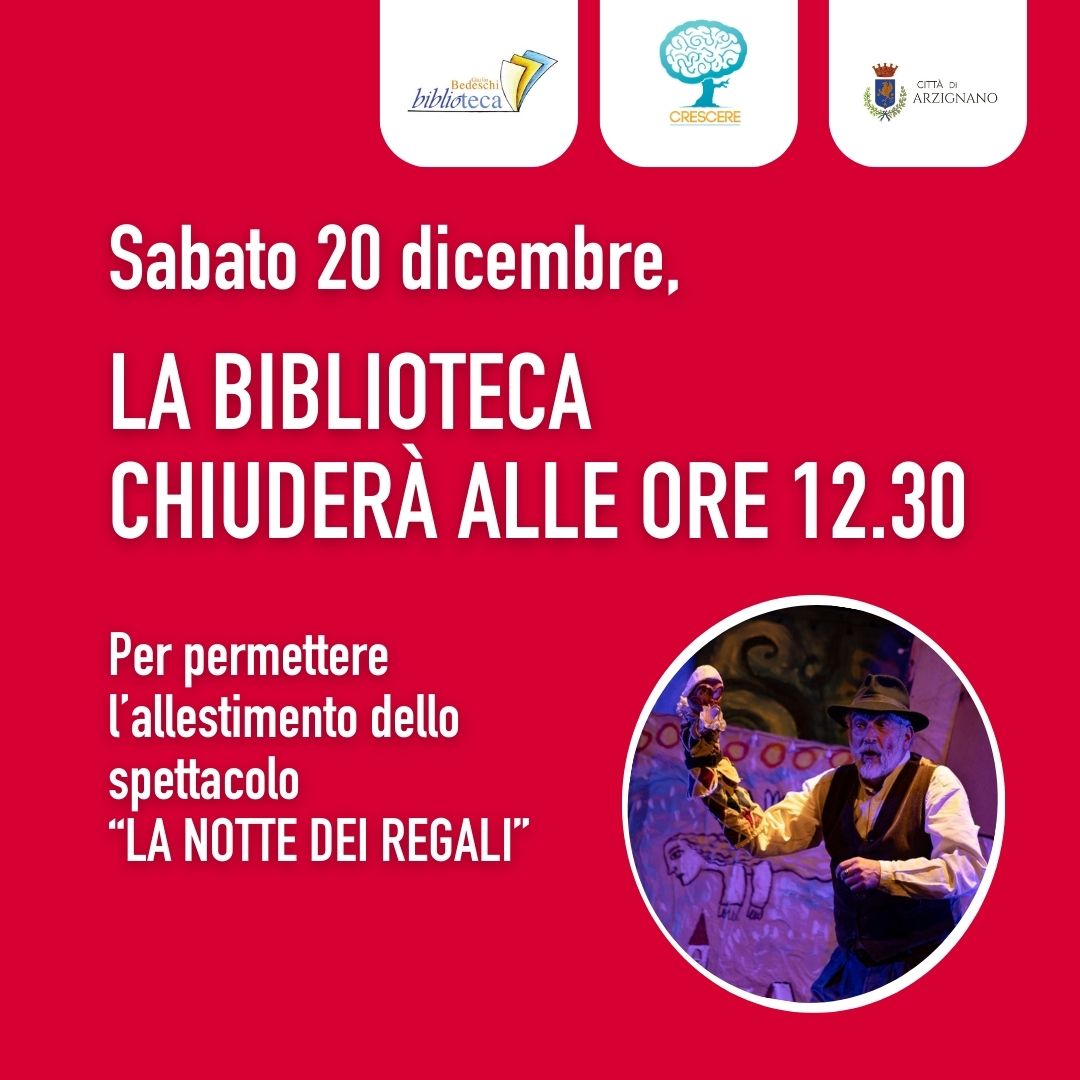 Sabato 20 dicembre, la Biblioteca chiuderà alle ore 12.30 per permettere l’allestimento dello spettacolo