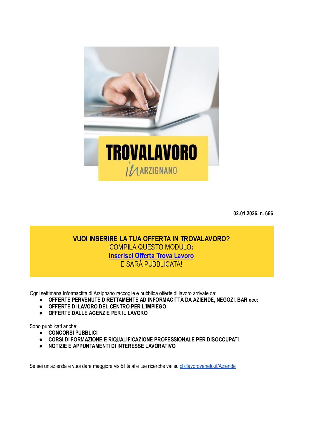 Ogni settimana Informacittà raccoglie e pubblica offerte di lavoro arrivate da: