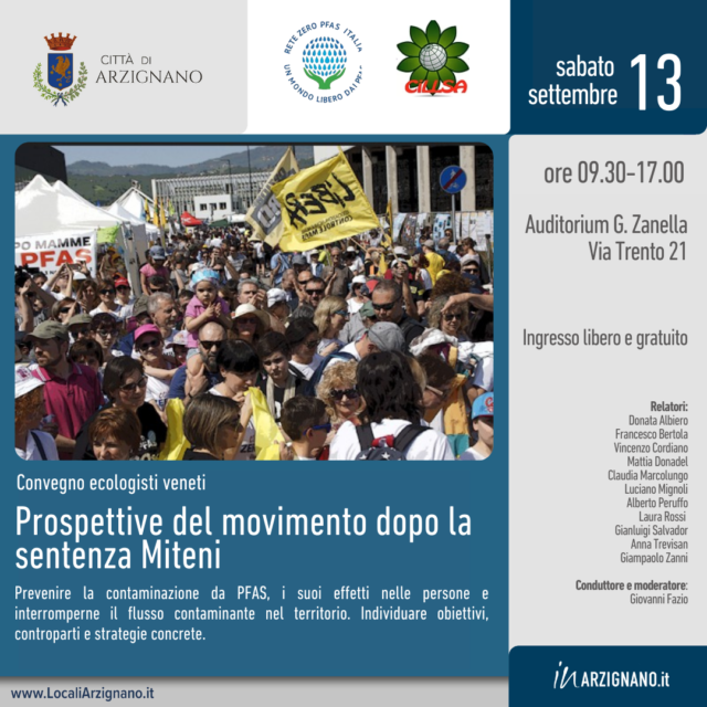 Comunicato Ambiente, Ecologia Biblioteca e Cultura Comunicato, 5 Settembre 2025 Ecofesta InArzignano: importante convegno sulle prospettive dopo la sentenza Miteni
