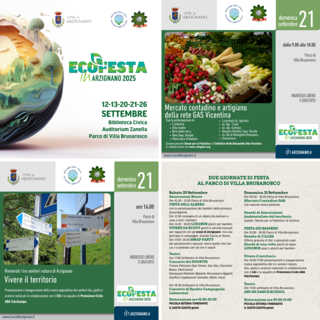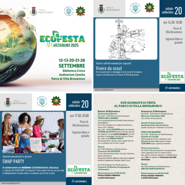 Comunicato Ambiente, Ecologia Comunicato, 12 Settembre 2025 Ecofesta InArzignano entra nel vivo: al Parco di Villa Brusarosco formazione, cultura e ambiente al centro della città