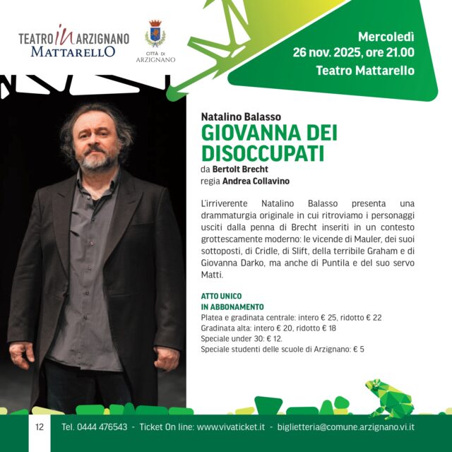 Evento Arte, Teatro, Cinema, Musica Evento, mercoledì 26 Novembre 2025 Giovanna dei disoccupati. Appuntamento con Natalino Balasso al Teatro Mattarello. Mercoledì 26 novembre
