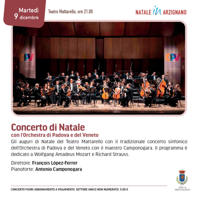 Evento Arte, Teatro, Cinema, Musica Intrattenimento e Feste Evento, martedì 9 Dicembre 2025 Concerto di Natale con l’Orchestra di Padova e del Veneto, in Teatro Mattarello, martedì 9 dicembre