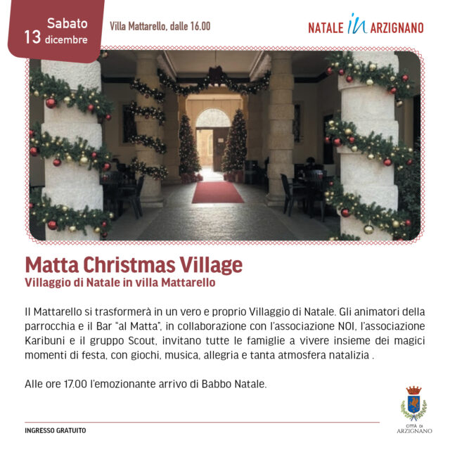 Evento Intrattenimento e Feste Evento, sabato 13 Dicembre 2025 Matta Christmas Village. Villaggio di Natale in villa Mattarello, sabato 13 dicembre