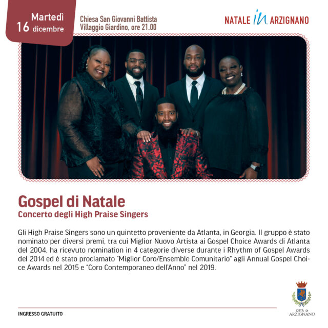 Evento Arte, Teatro, Cinema, Musica Intrattenimento e Feste Evento, martedì 16 Dicembre 2025 Gospel di Natale: concerto degli High Praise Singers, Martedì 16 dicembre dicembre