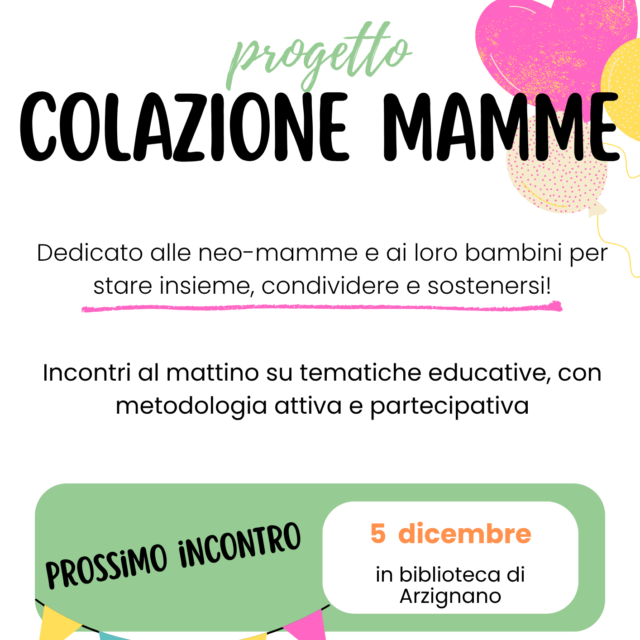 Evento Biblioteca e Cultura Senza categoria Evento, mercoledì 5 Novembre 2025 Colazione mamme. Il 5 dicembre in Biblioteca