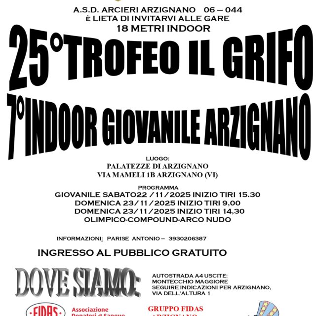 Comunicato Senza categoria Comunicato, 20 Novembre 2025 25º Trofeo Il Grifo e 7º Indoor Giovanile Arzignano: torna al Palatezze uno degli appuntamenti sportivi più attesi