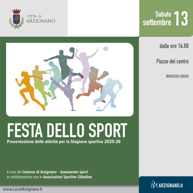 Comunicato Sport Comunicato, 9 Settembre 2025 Festa dello Sport 2025: Arzignano si trasforma in una palestra a cielo aperto – 13 settembre