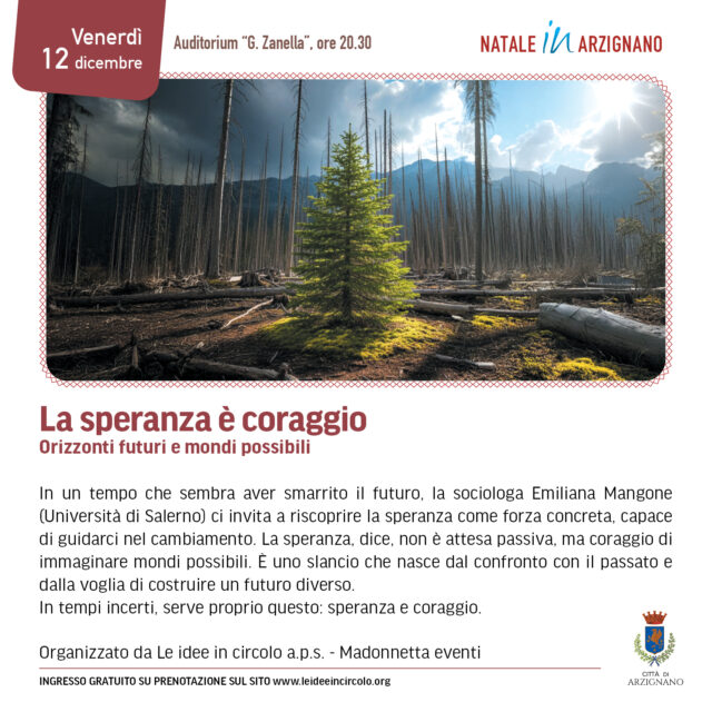 Evento Biblioteca e Cultura Evento, venerdì 12 Dicembre 2025 La speranza è coraggio. Incontro con la sociologa Emiliana Mangone. Venerdì 12 dicembre